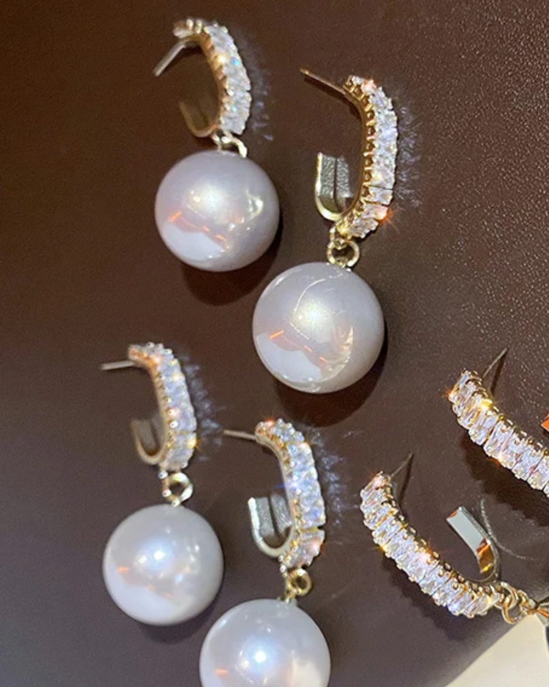 Pearl drop, Elegant design, Statement jewelry, Rhinestones, Fashion accessories, Luxury style, Perlenanhänger, Elegantes Design, Statement-Schmuck, Strasssteine, Silber, Gold, Modeaccessoires, Luxuriöser Stil, Shiny Kristall